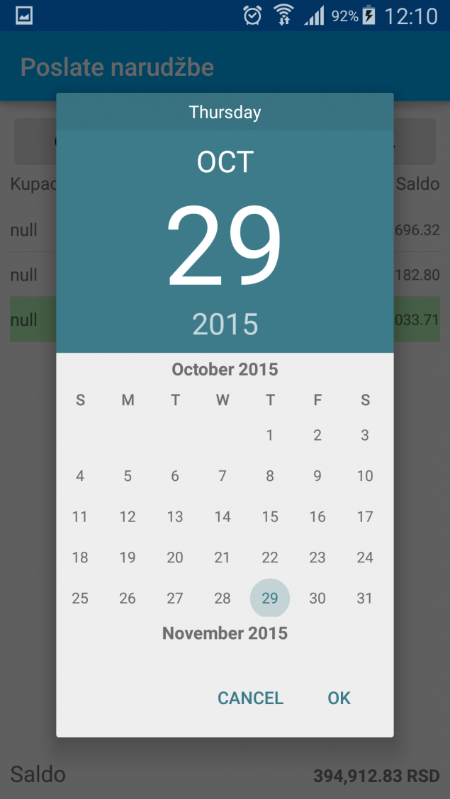 Opcija započete narudžbe vrši prikaz narudžbi koje su započete ali nisu poslate tu je prikazan naziv kupca. Ove narudžbe je moguće ponovo dopuniti i poslati.