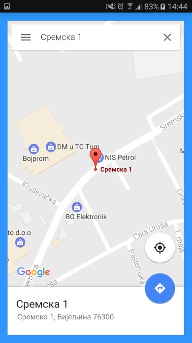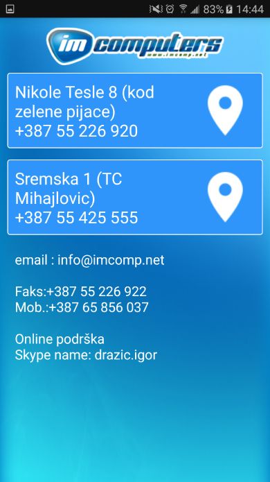 Namjena aplikacije je upoznavanje korisnika sa informacijama o firmi: osnovna djelatnost, kontakt podaci, lokacija na mapi...