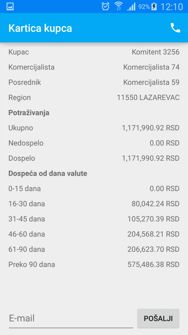Under the customer's card is a detailed presentation of receivables and due date from the date of the currency for the selected customer.