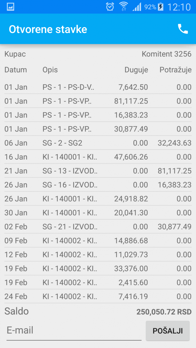 Open items are displayed for a specific customer and you can see when are his debts created and when are certain account payments done.
