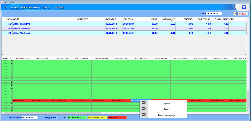The reception program allows the entire guest to keep track of the booking, arrival and accommodation, debits, and billing.